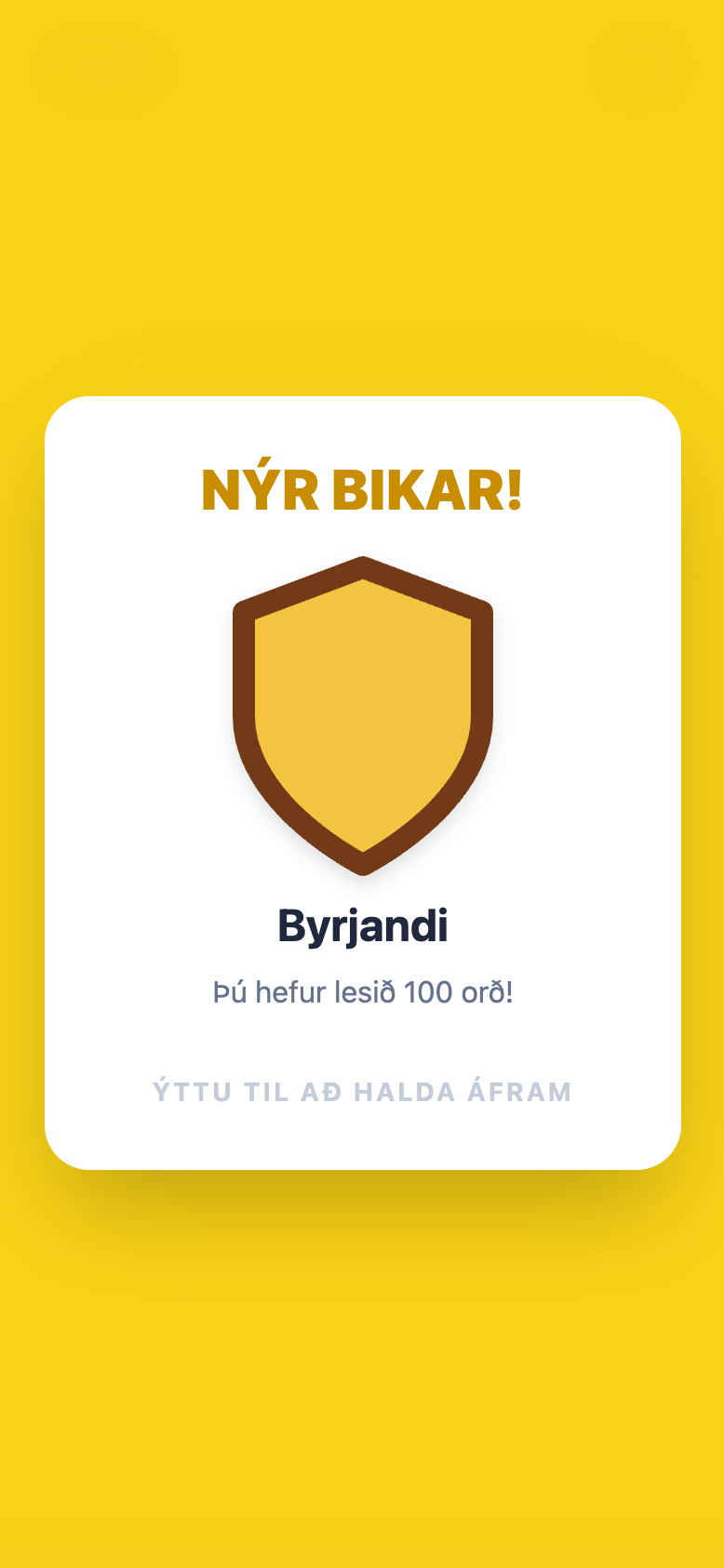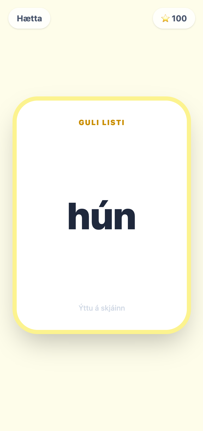 TL;DR: This will only be interesting for those who have young kids (1st/2nd grade roughly) learning to read in Icelandic, it’s a flash card game with the 100 most common Icelandic words. Thus the rest of this is in Icelandic.